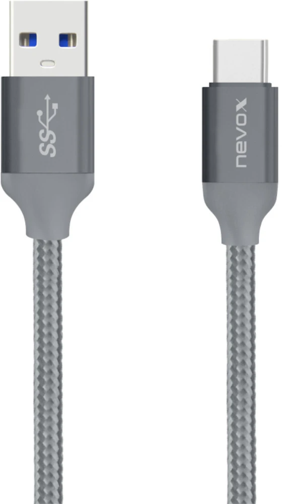 Nevox 0,5 m USB-C zu USB 3,0 Kabel Nylon geflochten Silber Grau